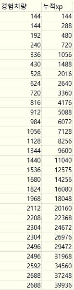 일단 경험치표 먼저 확인해보시죠