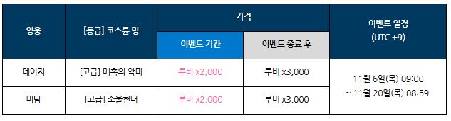 이벤트 기간 동안에는 루비 2,000개로 코스튬을 구매할 수 있지만
