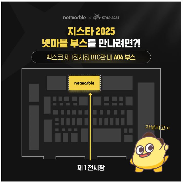 넷마블 부스는 부산 벡스코 제1전시장 BTC관 내 A04에 위치하며