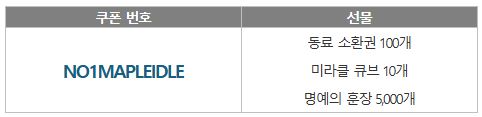 쿠폰 번호는 NO1MAPLEIDLE 입니다.