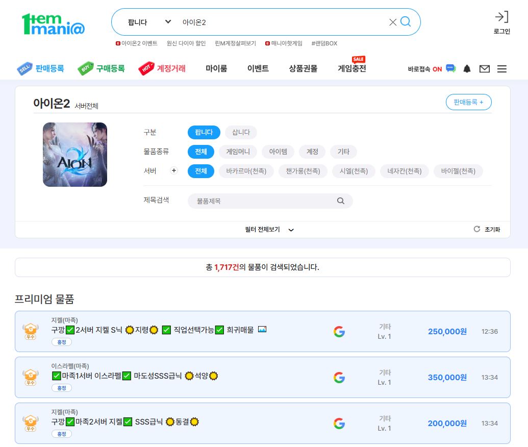 아이온2의 닉네임 선점과 서버 선점 성공 계정 매물들이 올라오고 있다는 사실입니다.