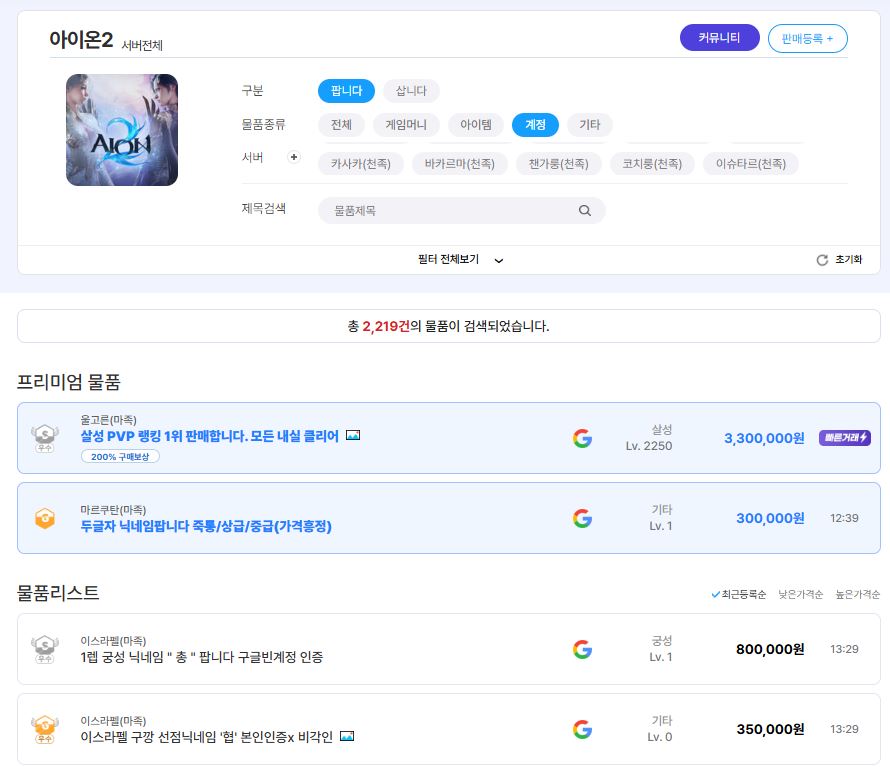 아이템매니아에서는 다양한 계정 매물이 쏟아지고 있다는 사실!