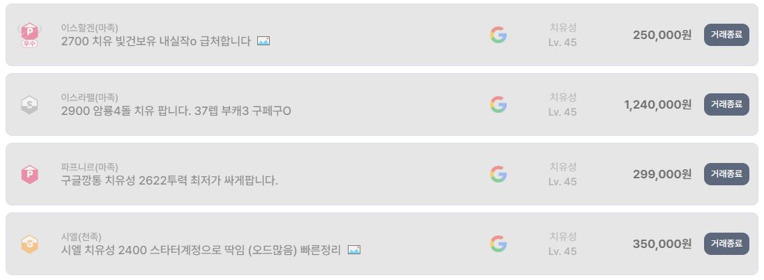 거래 종료된 매물을 기준으로 보면 2600~2800대 치유성 계정은