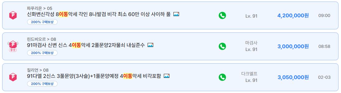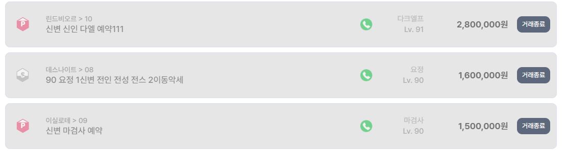 종료 매물 중 상당수는 레벨 88~90 구간 계정이고